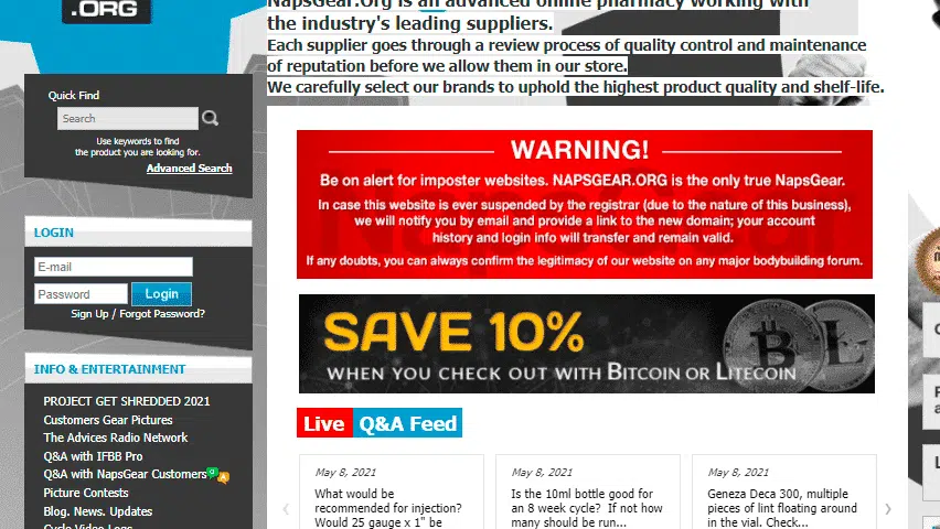 En conclusión, ni siquiera me molesté en hacer un pedido de prueba en Napsgear.org. Había demasiadas razones para descartarlo (medicamentos, Moldavia, retrasos en el envío, fotos, pruebas de laboratorio falsas…). Simplemente no estaba interesado en perder mi dinero.